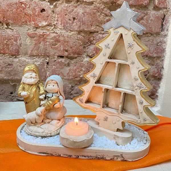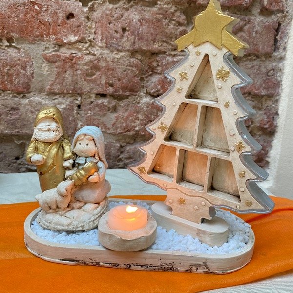 Set completo incluye: pinito, base ovalada, porta vela, pesebre y piedritas para decorar.