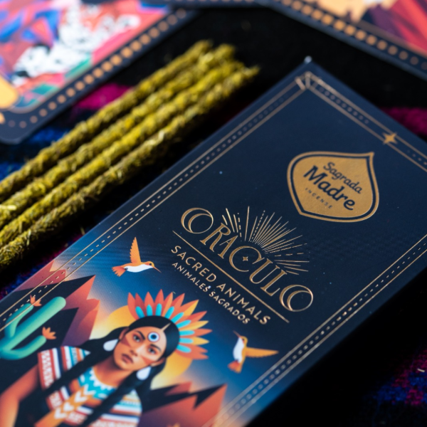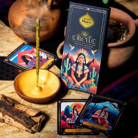 Sahumerios natural de Sagrada Madre motivo Oráculo de los Animales. En cada caja vas a encontrar 8 varillas y 1 de 12 cartas coleccionables para que completes tu mazo sagrado.