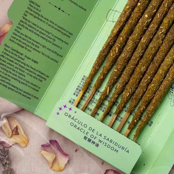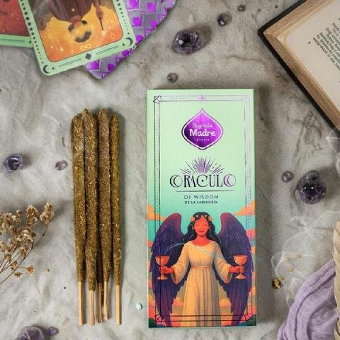 Sahumerios natural de Sagrada Madre motivo Oráculo de la sabiduria. En cada caja vas a encontrar 8 varillas y 1 de 12 cartas coleccionables para que completes tu mazo sagrado.